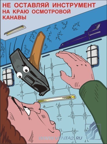 Плакат "Не оставляй инструмент на краю осмотровой канавы"