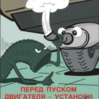 Плакат "Перед пуском двигателя-установи трубу для отвода выхлопных газов"