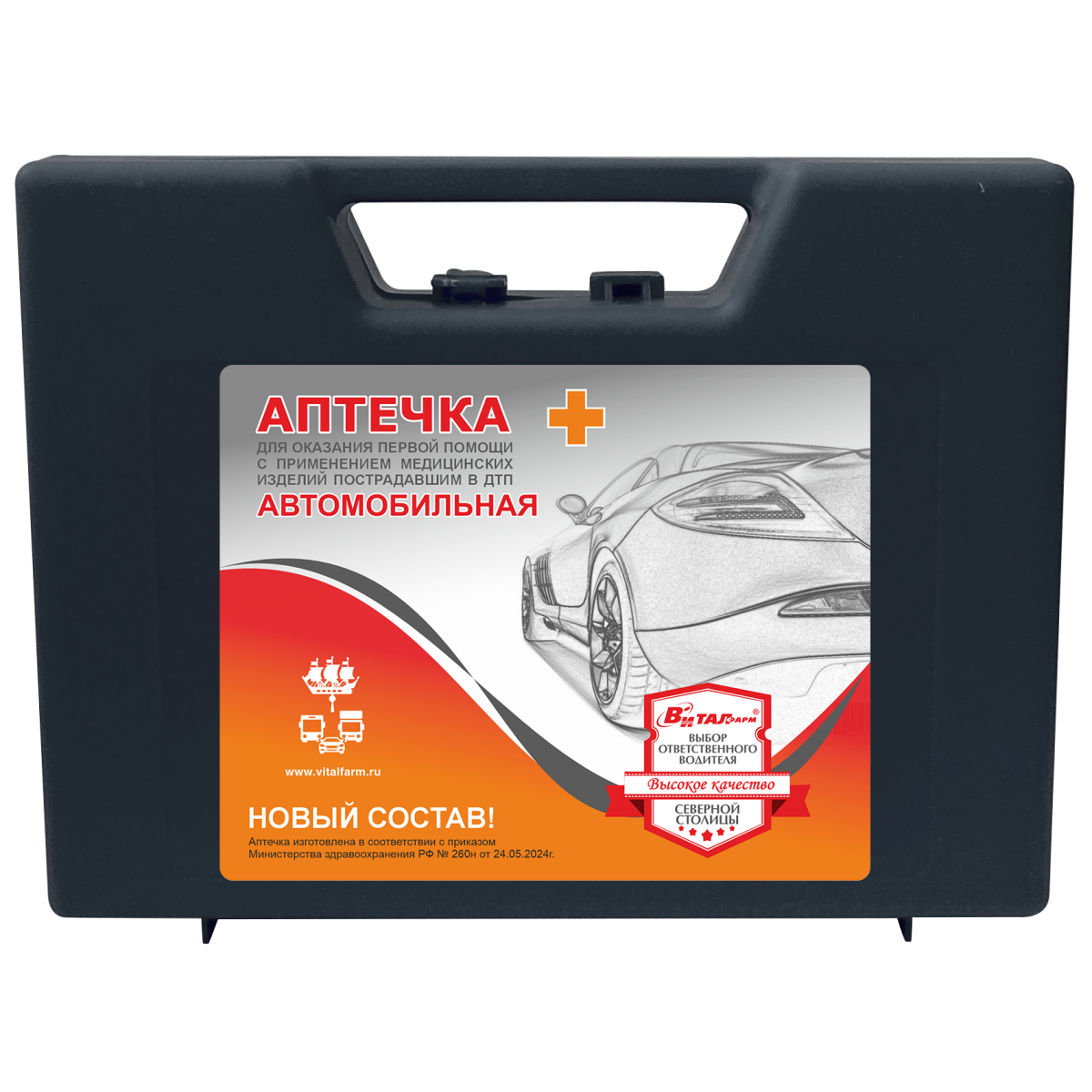 Аптечка для оказания первой помощи с применением медицинских изделий пострадавшим в дорожно-транспортных происшествиях (автомобильная) предназначена для оснащения транспортных средств (автомобилей).