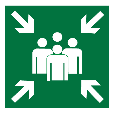 Назначение:На дверях, стенах помещений и в других местах для обозначения заранее предусмотренных пунктов (мест) сбора людей в случае возникновения пожара, аварии или другой чрезвычайной ситуации