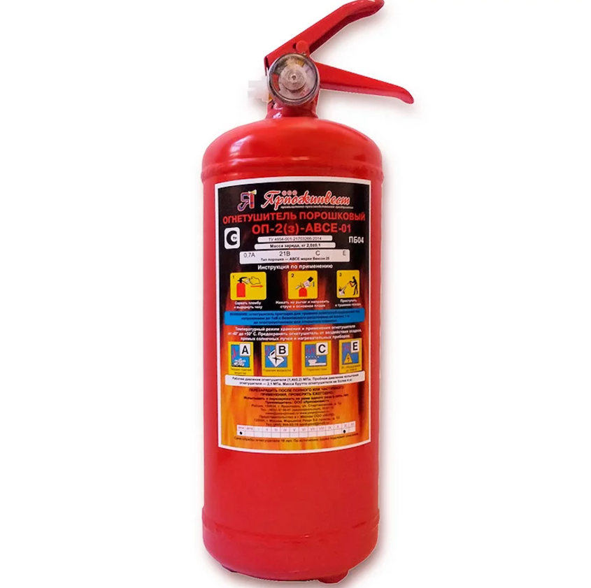 Переносные порошковые огнетушители ОП-2 используют для тушения твердых веществ, жидкостей и газов, а также электроустановок под напряжением
