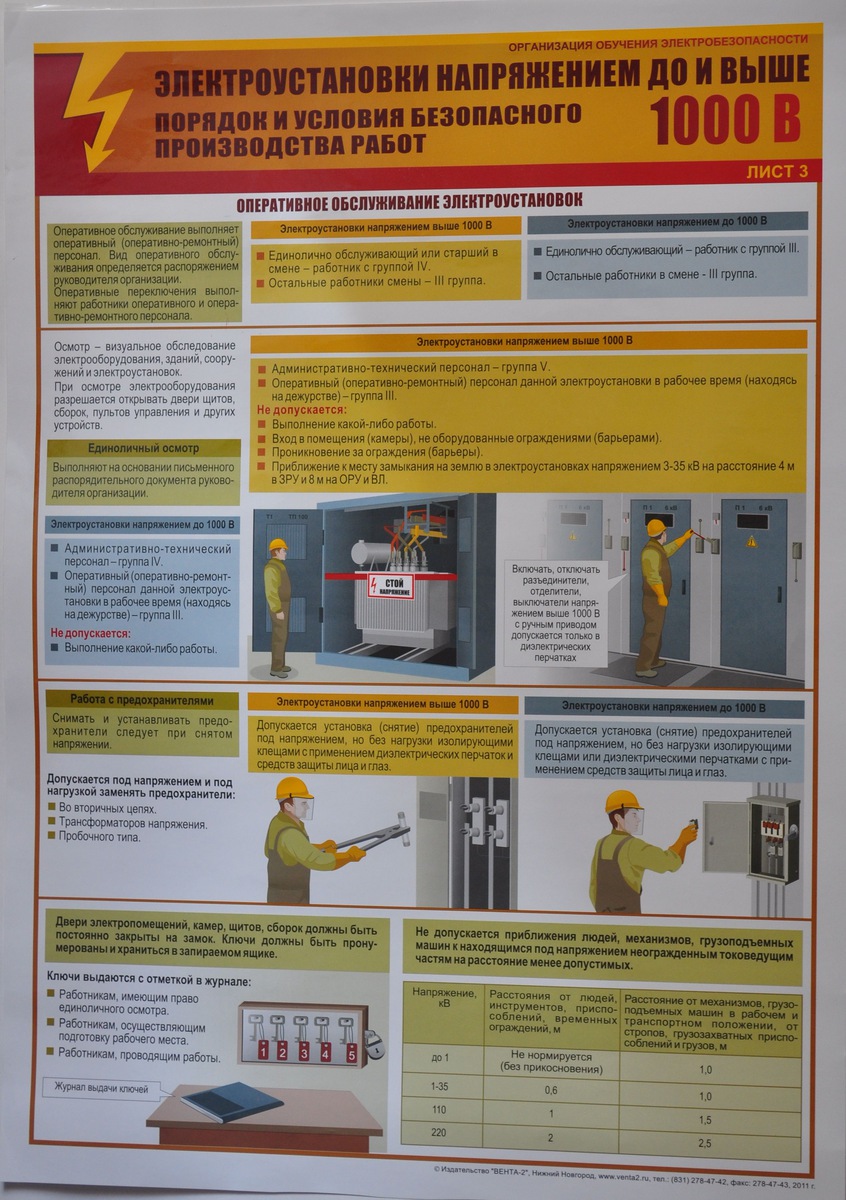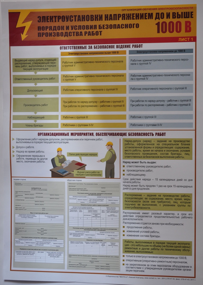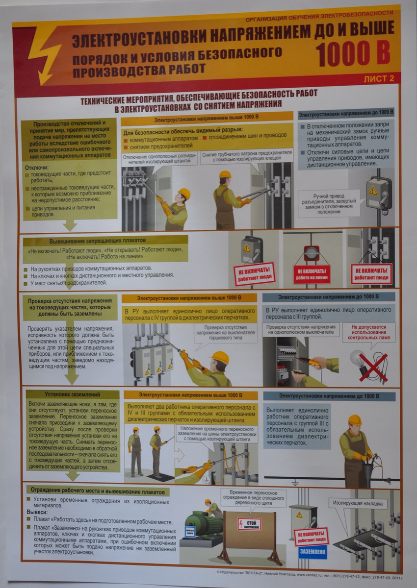 Плакат "Электроустановки напряжением до и выше 1000 В. Порядок и условия производства работ.