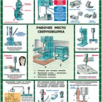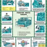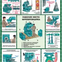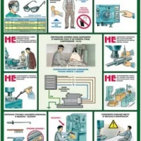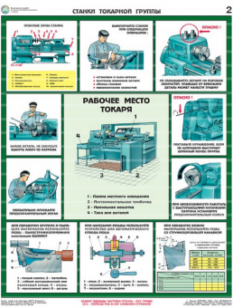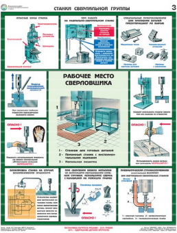 Комплект плакатов иллюстрирует безопасные приемы и методы работы на металлообрабатывающих станках. Описание комплекта по листам: общие меры безопасности, станки токарной группы, станки сверлильной группы, станки фрезерной группы, станки шлифовальной и заточной групп.