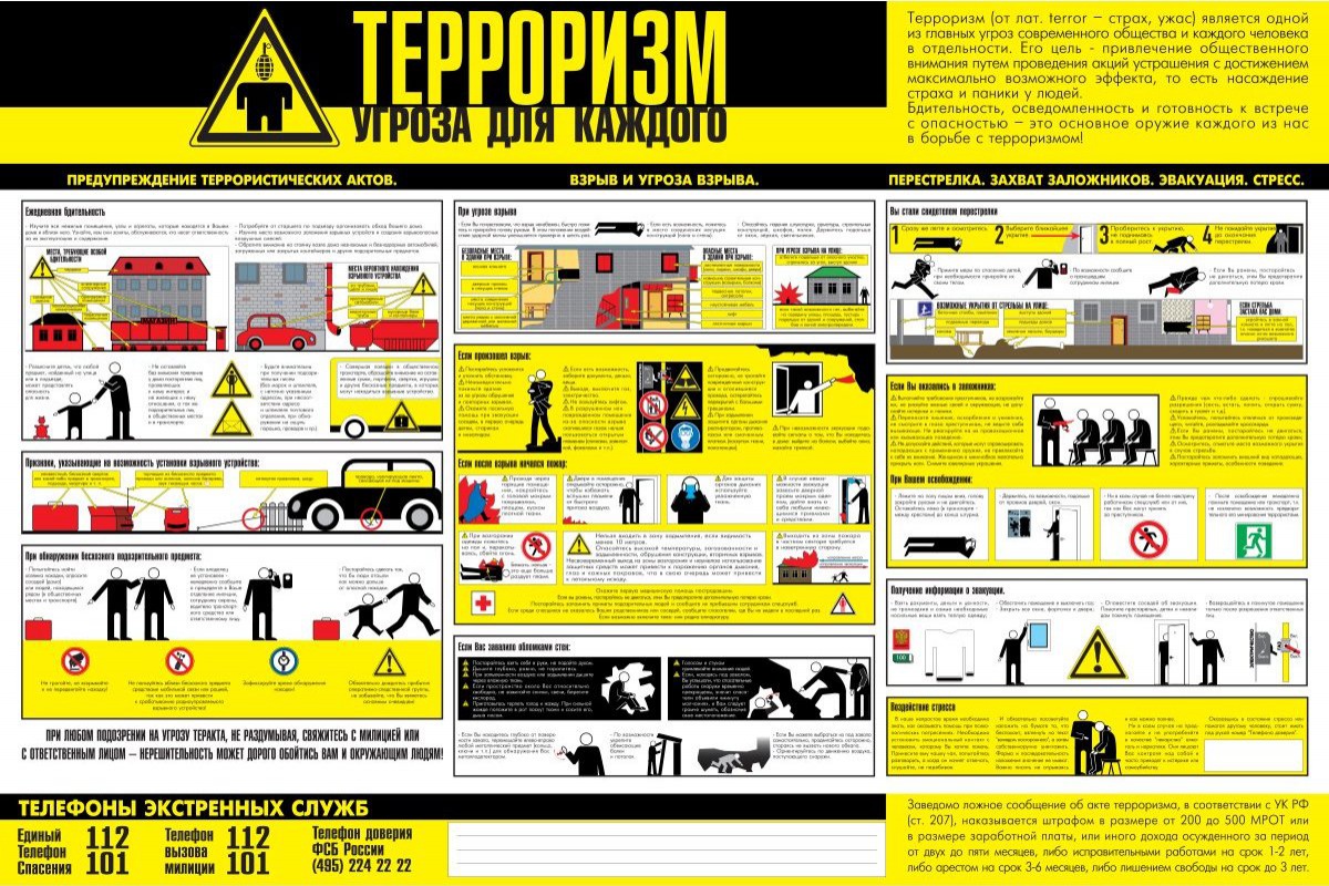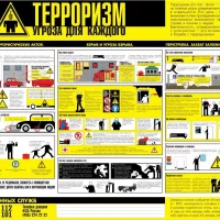 Комплект плакатов «Осторожно! терроризм» из 3 листов – необходимое пособие для изучения ГО и ОБЖ в каждой организации. Комплект из трех плакатов, посвященных предупреждению и борьбе с террористической угрозой – внутриобъектовый режим и бдительность, изучение внутреннего распорядка и путей эвакуации, признаки взрывных устройств и действия при их обнаружении, террористическая угроза и правила поведения заложников.