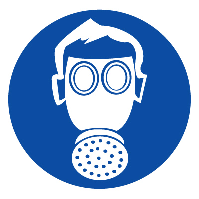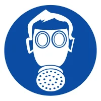 Знак "Работать в средствах индивидуальной защиты органов дыхания" 200х200