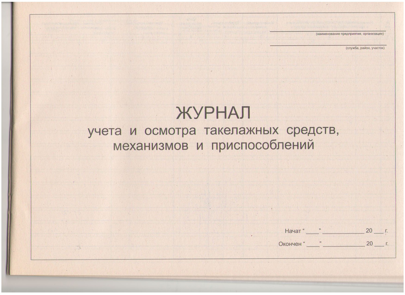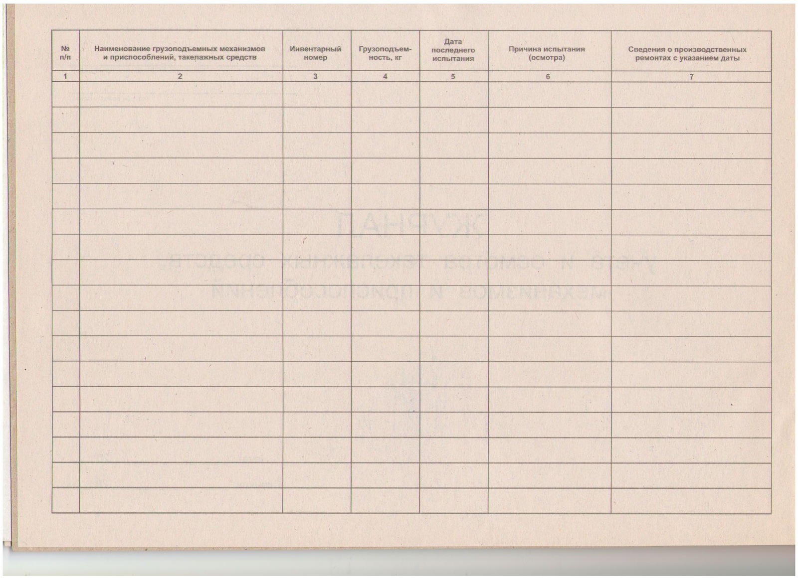 Журнал учета и осмотра такелажных средств,механизмов и приспособлений