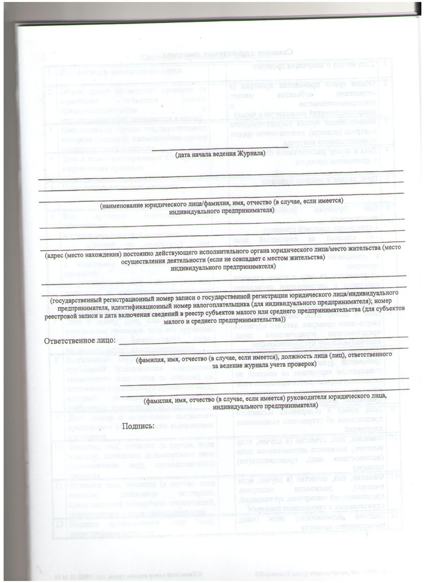 Журнал учета проверок юридического лица, индивидуального предпринимателя, проводимых органами государственного контроля (надзора), органами муниципального контроля
