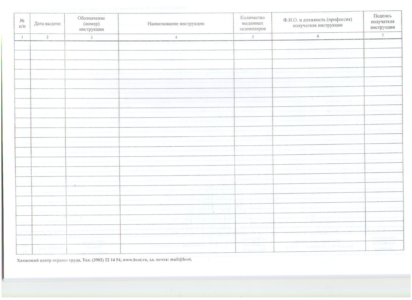 Журнал учета выдачи инструкций по охране труда для работников