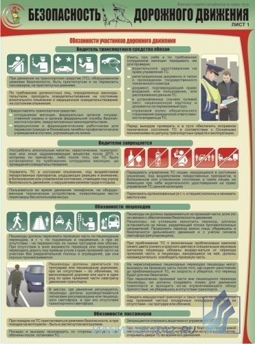 Лист 1 – Обязанности участников дорожного движения (Водитель транспортного следственно обязан, водителю запрещается, обязанности пешеходов, обязанности пассажиров);