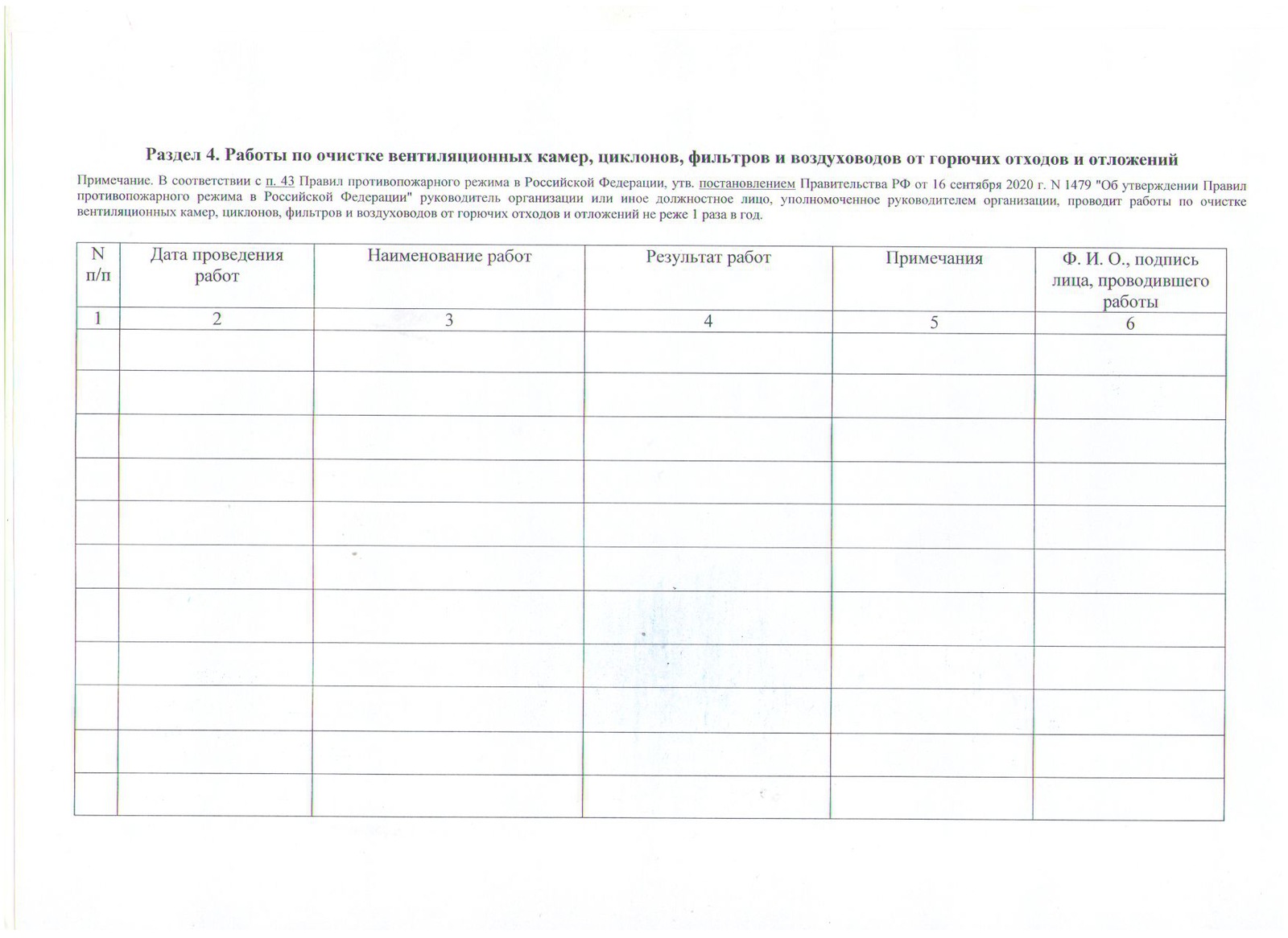 Раздел 4. Работы по очистке вентиляционных камер, циклонов, фильтров и воздуховодов от горючих отходов и отложений