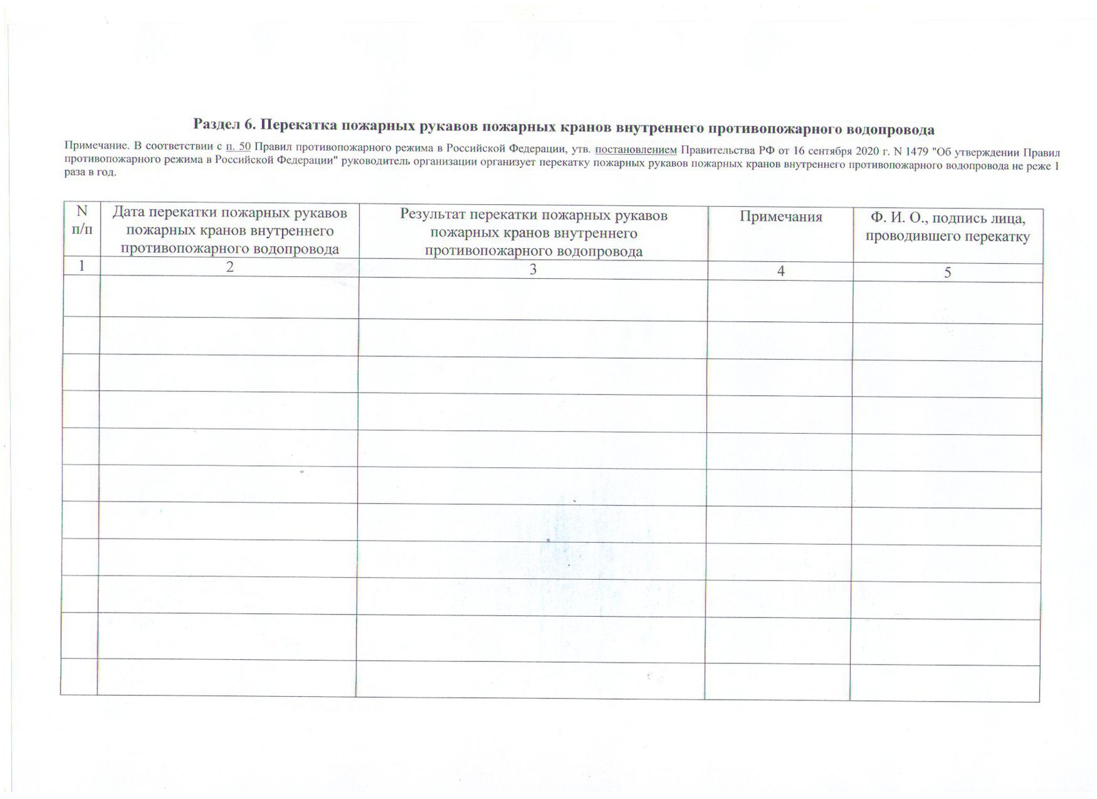 Раздел 6. Перекатка пожарных рукавов пожарных кранов внутреннего противопожарного водопровода