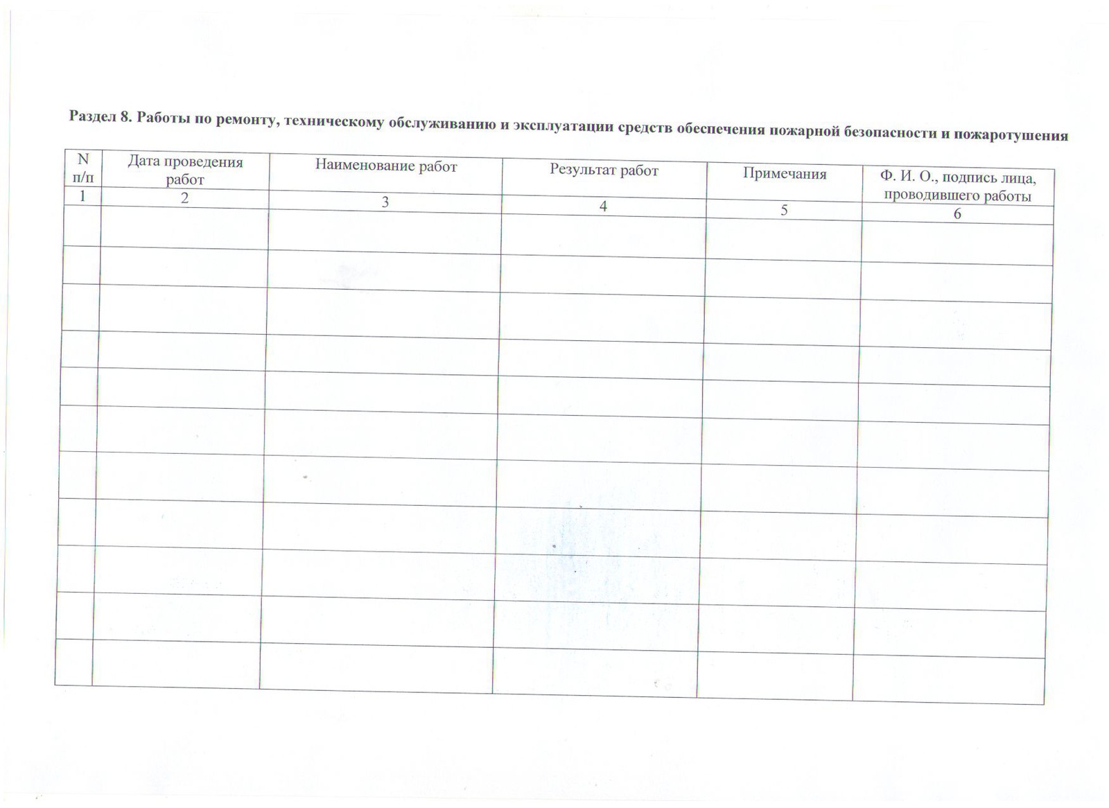 Раздел 8. Работы по ремонту, техническому обслуживанию и эксплуатации средств обеспечения пожарной безопасности и пожаротушения